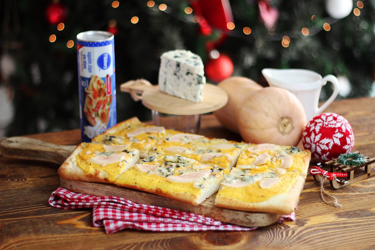 Χριστουγεννιάτικη πίτσα με κολοκύθα και γκοργκοντζόλα