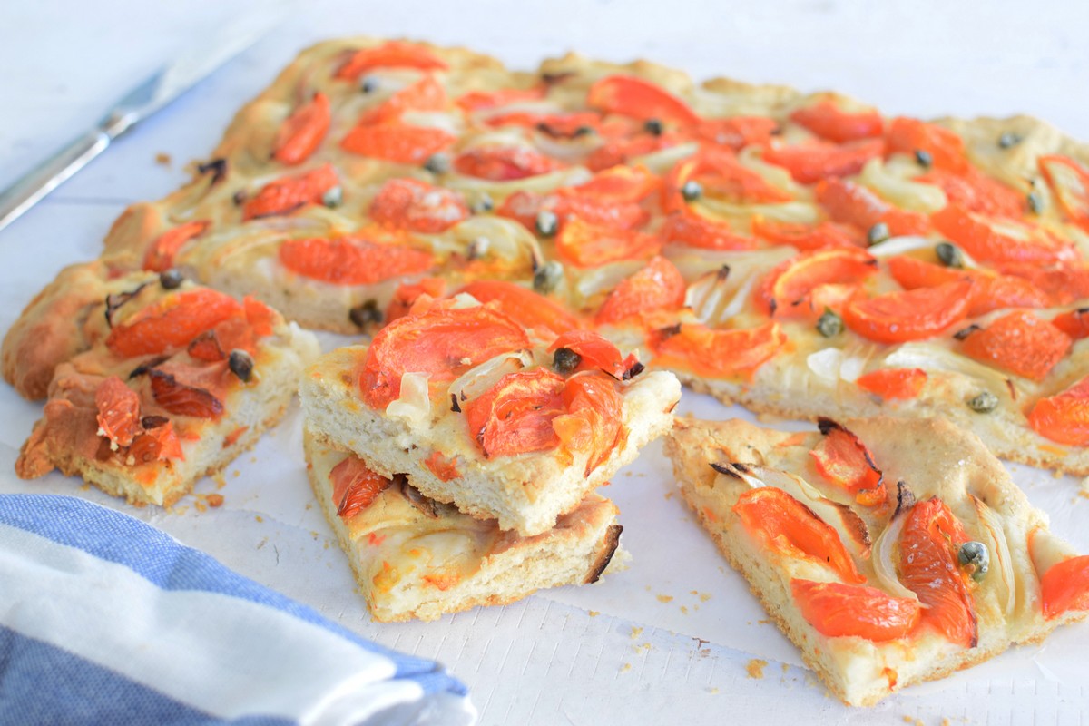 Πρόκειται για μια συνταγή που θυμίζει πίτσα – στην πιο «ψωμένια» εκδοχή της – με όλα τα ελληνικά καλοκαιρινά λαχανικά!