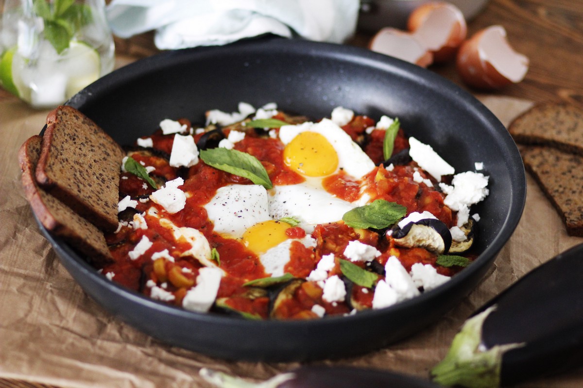 Μελιτζάνες σε σάλτσα τομάτας με αυγά