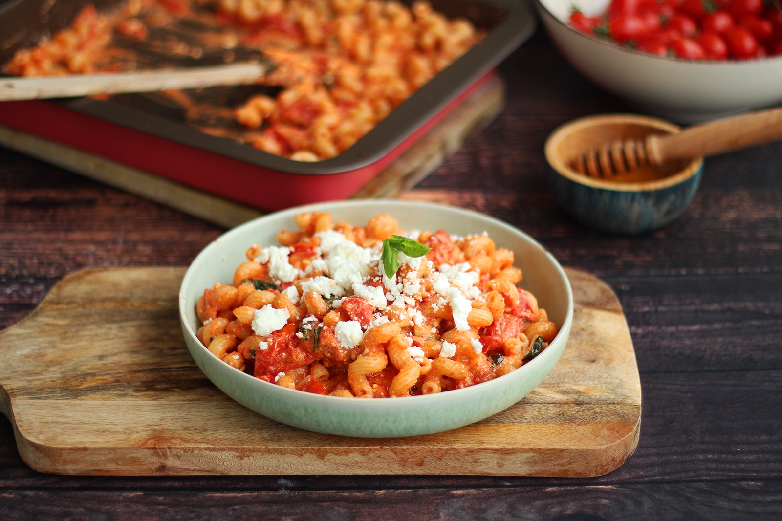 Φέτα και ντοματίνια φουρνίζονται και παντρεύονται σε μια πανεύκολη συνταγή που γίνεται σε ένα μόνο ταψί!