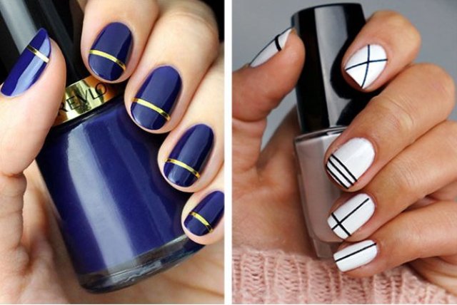Τα γραμμικά σχέδια για τα νύχια είναι εξίσου εύκολα, αρκεί να έχεις ένα μαρκαδοράκι με λεπτή μύτη. Έπειτα, μπορείς να αφήσεις ελεύθερη την φαντασία σου και να κάνεις διάφορες γραμμές.