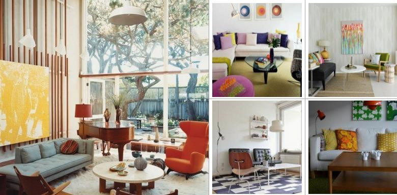 Τα έπιπλα που θα προσδώσουν στο σαλόνι σας ρετρό χαρακτήρα, είναι αυτά με τις έντονες γραμμές και καμπύλες. Μπορείτε να τοποθετήσετε ένα τραπεζάκι σαλονιού γυάλινο με στρογγυλεμένες γωνίες και ξύλινες πολυθρόνες με στρογγυλεμένες άκρες. Ακόμα μπορείτε να διαλέξετε ξύλινα τραπέζια σαλονιού με έντονες γωνίες, καναπέδες με στρογγυλά μπράτσα σε έντονο κίτρινο, πράσινο, κόκκινο χρώμα, ή φλοράρ σχέδιο.Αυτά είναι τα έπιπλα που θα χρειαστεί να ανανεώσετε πρώτα, για να πετύχετε το στυλ που θέλετε.