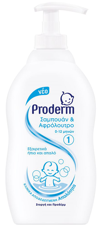 Ιδαίτερα σημαντική για το μπάνιο του μωρού σας, είναι η χρήση κατάλληλων προϊόντων καθώς η βρεφική επιδερμίδα είναι εξαιρετικα ευαίσθητη. Η χρήση ελεγμένων αφρόλουτρων και σαμπουάν, εξασφαλίζουν τη σωστή περιποίηση της επιδερμίδας του μωρού σας. Η  βρεφική σειρά της Proderm για μωρά ως 12 μηνών, είναι η ιδανική επιλογή, καθώς περιέχει επιστημονικά μελετημένες συνθέσεις, υποαλλεργικές και κλινικά δοκιμασμένες. Τα ήπια συστατικά των προϊόντων Proderm είναι ιδανικά για τη φροντίδα του μωρού σας, προστατεύοντας απο την ξηρότητα του βρεφικού δέρματος ενώ καθαρίζουν απαλά. Εξάλλου, το χαρακτηριστικό μωρουδιακό άρωμα της Proderm,  είναι από μόνο του μια υπογραφή απαλότητας, μια μυρωδιά που όλοι αγαπάμε!