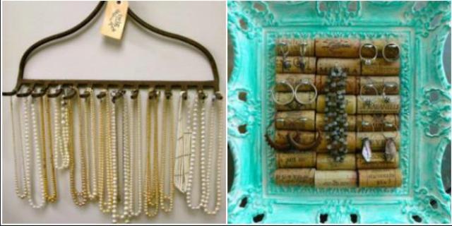 Εκτός από θήκη για τα κοσμήματα σου είναι κι ένα εντυπωσιακό διακοσμητικό. Διάλεξε μπουκαλάκια σε διάφορα μεγέθη και στον φελλό που κλείνουν πέρασε μικρά γατζάκια. Κρέμασε από εκεί τα βραχιόλια και τα κολιέ σου. Το αποτέλεσμα θα είναι πολύ εντυπωσιακό.