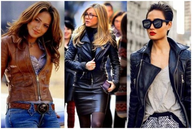 Πιο εναλλακτική πρόταση που μας προσφέρει η Jennifer Aniston. Δερμάτινο με τύπωμα και έντονα φερμουάρ. Τολμηρή επιλογή που μπορεί να συνδυαστεί με δερμάτινη φούστα και μπότες και βασικό στοιχείο στο όλο look η μονοχρωμία. Με ένα τόσο "απαιτητικό" δερμάτινο θέλεις όλα τα υπόλοιπα αξεσουάρ να δένουν ήρεμα και αρμονικά ώστε να μην χαλάσεις το style σου και να μην φανεί το δερμάτινο "δεύτερο".