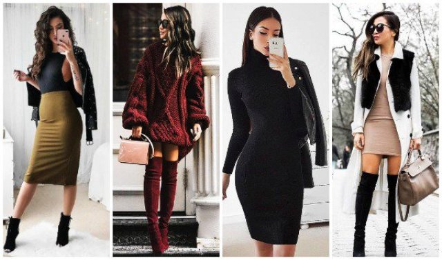 Για πιο θηλυκές εμφανίσεις φορέματα και φούστες είναι οι επιλογές σου. Κολλητά φορέματα και ψηλόμεσες φούστες συνδυασμένες με δερμάτινο μπουφάν, μποτάκια ή μπότες πάνω από το γόνατο είναι μερικές από τις επιλογές σου. Εντυπωσιάζουν, φέτος τα μάλλινα φορέματα που συνδυάζονται απίστευτα με μπότες πάνω από το γόνατο, καθώς επίσης και τα φούτερ- φορέματα για πιο casual εμφανίσεις με ένα πιο αθλητικό παπούτσι.