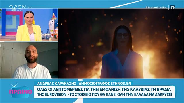 Όλες οι λεπτομέρειες για την εμφάνιση της Κλαυδίας τη βραδιά της Eurovision και το στοιχείο που θα κάνει όλη την Ελλάδα να δακρύσει αναφέρει ο Πολιτιστικός Συντάκτης του ethnos.gr, Ανδρέας Καρακάσης στο «Πρωινό ΣουΣου».