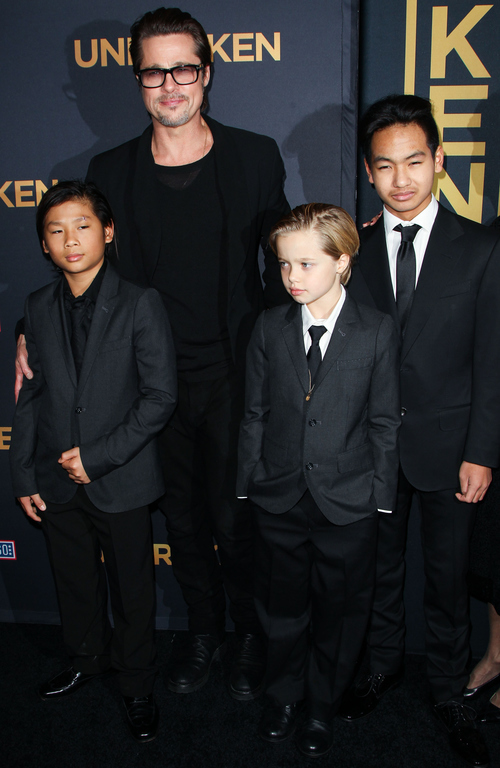 Ο Brad Pitt, με μαύρα γυαλιά, έκανε τρομερή εμφάνιση με τρία από τα έξι παιδιά του, τον Pax Thien Jolie-Pitt, τη Shiloh Nouvel Jolie-Pitt και τον Maddox Jolie-Pitt.