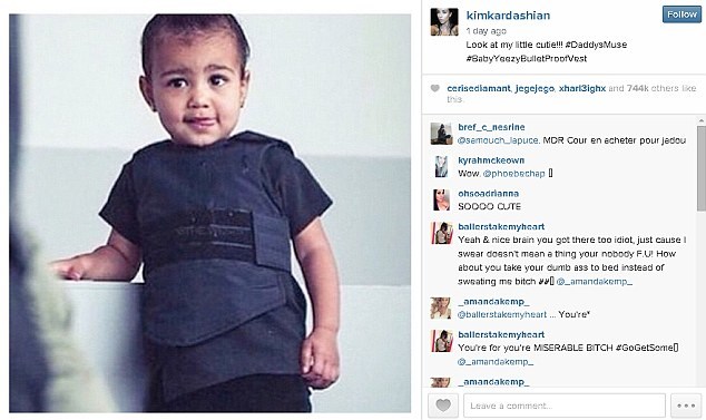 Όλοι παρατήρησαν το κλάμα της μικρής North στο fashion show, ωστόσο κανείς δεν είχε προσέξει το γιλέκο που φορούσε η μικρή. Η μαμά της η Kim φρόντισε να κάνει τους πάντες να μιλούν για αυτό ανεβάζοντας σχετική φωτογραφία στα μέσα κοινωνικής δικτύωσης. Άμεσα, ακολούθησαν έντονα σχόλια και κριτικές, που έκαναν λόγο για ανεύθυνη συμπεριφορά της τηλεπερσόνας και για στιλιστικές επιλογές, που δεν αρμόζουν σε ένα τόσο μικρό κοριτσάκι...