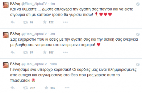 Ελένη Μενεγάκη: Άρχισε τα tweets αμέσως μετά τον τοκετό