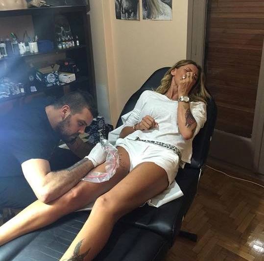 Η Αγγελική προτίμησε να το κάνει στο μηρό, ενώ ο ποδοσφαιριστής στον ώμο του.